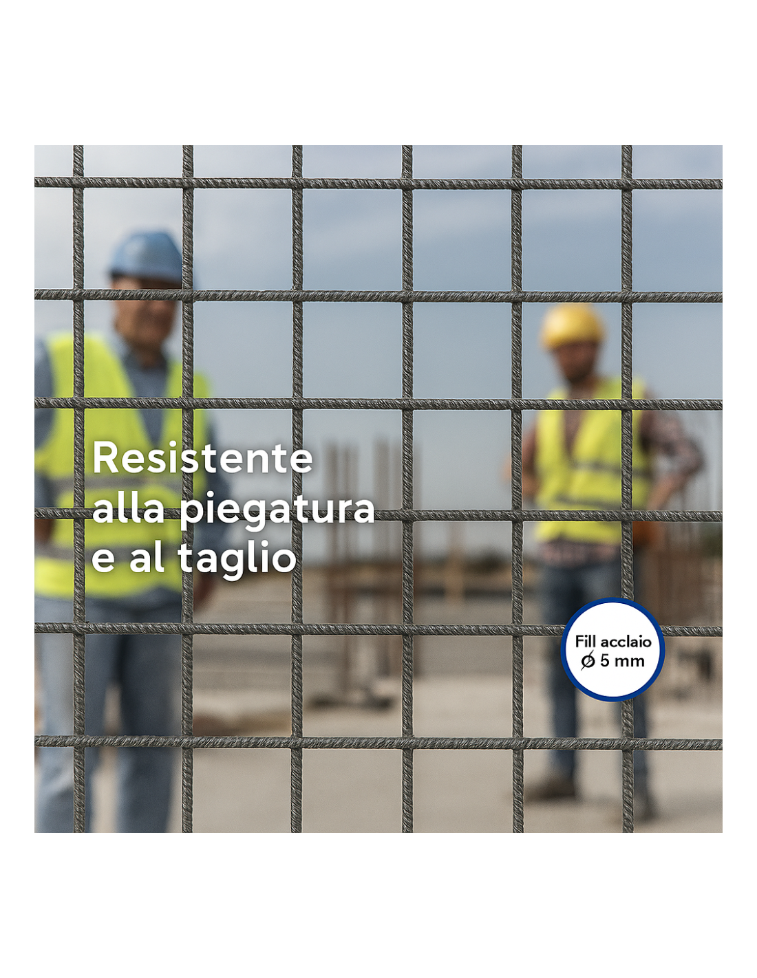 - CARATTERISTICHE: griglia robusta con fili d’acciaio Ø 5 mm elettrosaldati e maglia 20x20 cm, foglio dimensioni 1,5x1 m per applicazioni professionali